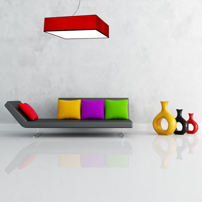 Diffusore in tessuto in cotone accoppiato al pvc, disponibile nei colori bianco, beige, arancio, rosso, verde acido, nero, bordeaux, testa di moro, lilla. Disponibile in diverse misure: 50, 60, 70, 90, 100 e 120 cm. Chiusura inferiore a incastro di colore bianco, semplice, facile e veloce da pulire. Struttura in acciaio verniciato bianco.