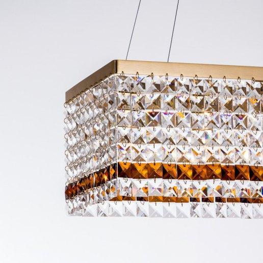 Steel structure with polished chrome or gold finish. Diffuser in asfour square crystals with transparent finish or red crown, amber crown, wisteria crown, black crown.