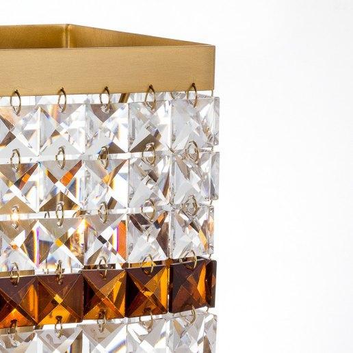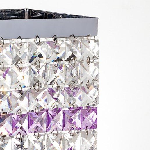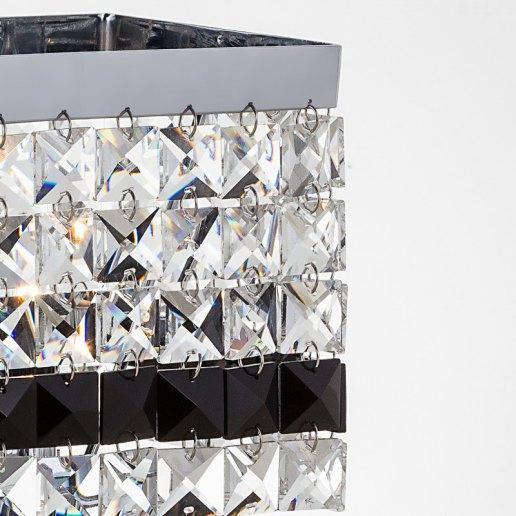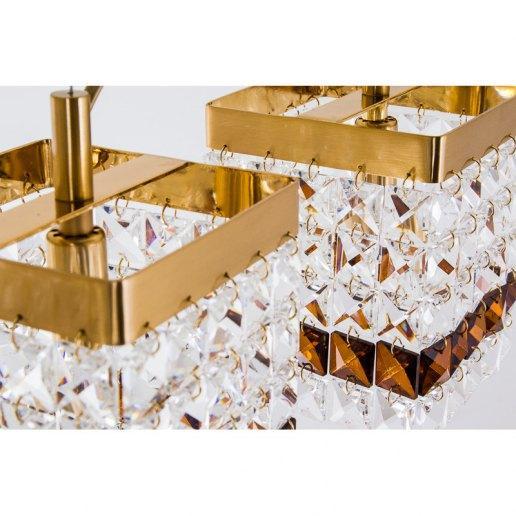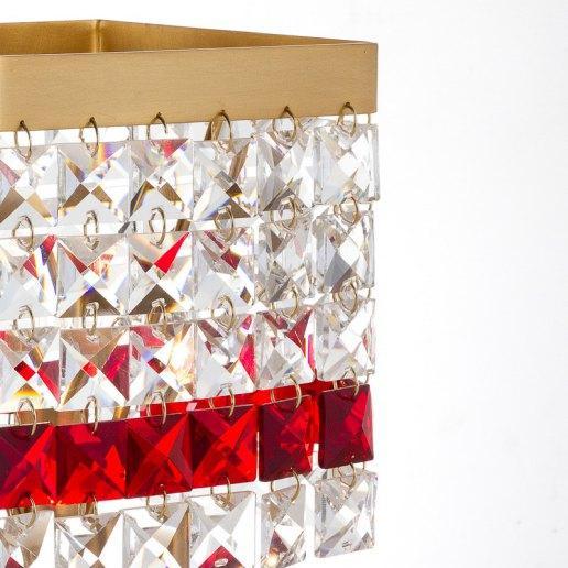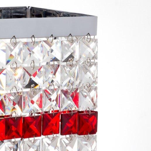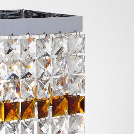 Steel structure with polished chrome or gold finish. Diffuser in asfour square crystals with transparent finish or red crown, amber crown, wisteria crown, black crown.