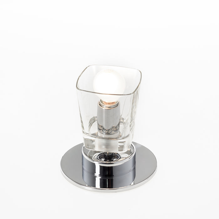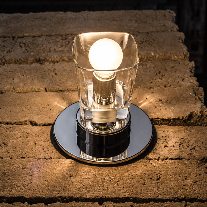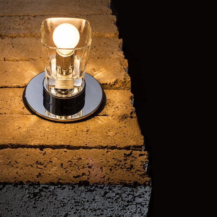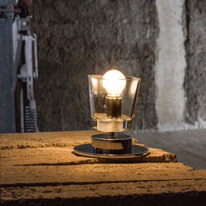 Lámpara de sobremesa serie Modern, estructura en acero cromado, difusor de cristal en cristal transparente natural.