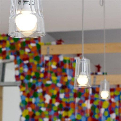 La suspensión Sunglass Mojito es muy flexible, se puede montar de muchas maneras, resuelve varios problemas de instalación ya que permite tener un punto de luz, o varios puntos de luz, incluso lejos del punto de conexión eléctrica que puede ser en el techo o en la muro. Los cables se pueden acortar y alargar según se desee y según la necesidad, además los componentes descentrados que permiten la instalación descentralizada no necesariamente tienen que ser usados todos y no hay puntos obligatorios, se pueden guardar como repuesto o instalar en otro forma. Los elementos compensados y los cables más largos están disponibles bajo pedido.