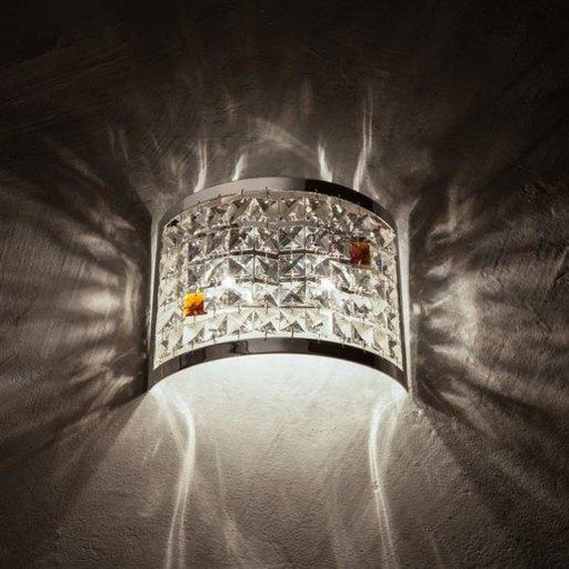 Los apliques en la pared son la solución para iluminar un ambiente de forma chispeante y difusa. Puedes colocarlos a la altura que quieras, su estructura metálica con cristales de cuatro colores o transparentes crea refinados efectos de luz. Los apliques de cristal con una forma moderna están disponibles ovalados, cuadrados, cruzados.