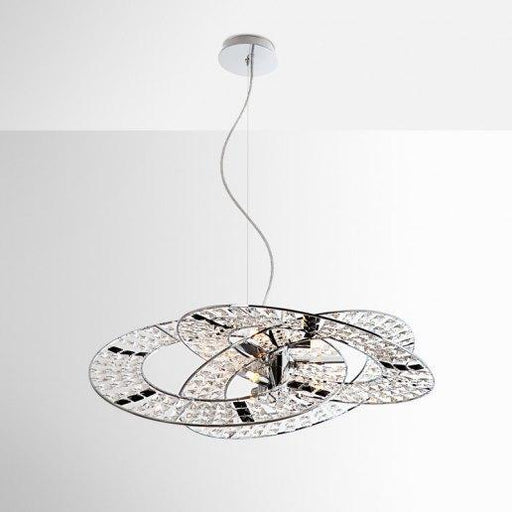 Descripción del Producto: Lámpara de suspensión, con detalles cromados. Difusor en cristal artístico con detalles de cristal en blanco y negro o...