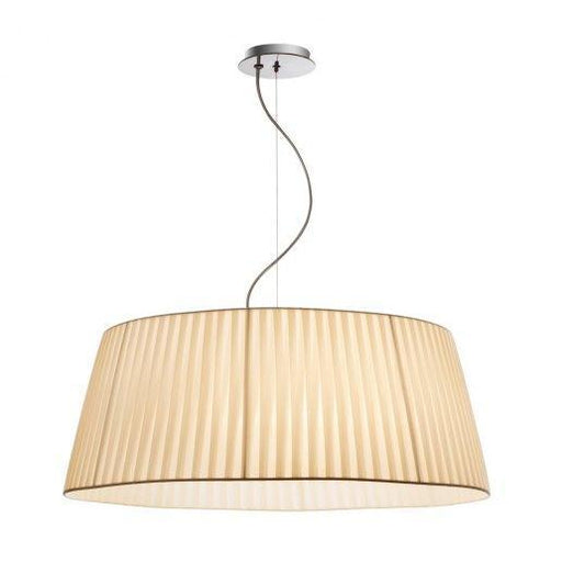 Descripción del Producto: Suspensión con pantalla difusora en tejido cretona de algodón acoplado a pvc, plafón de acero cromado con base cuadrad...