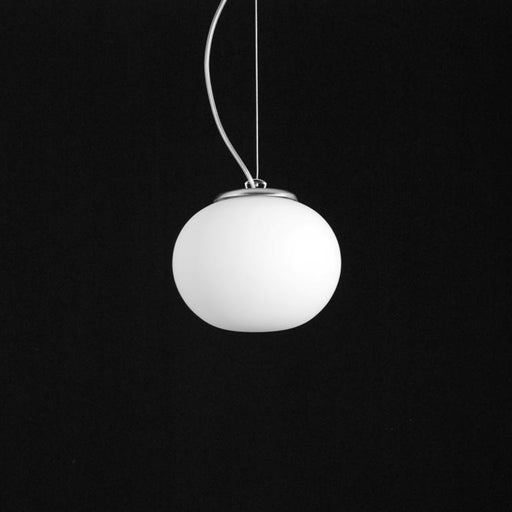 Descripción del Producto: Cúpula de suspensión en metacrilato opalino blanco, marco y caja de fijación a techo en acero cromado, n. 3 cables de ...