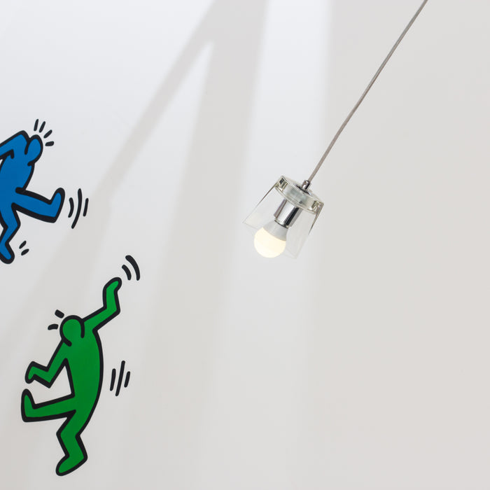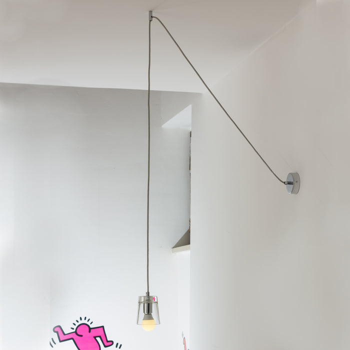 La sospensione Sunglass Campari è molto flessibile, può essere montata in tanti modi, risolve diversi problemi di installazione poiché permette di avere un punto luce, oppure diversi punti luce, anche lontano dal punto di attacco elettrico che può essere a soffitto o a parete. I fili possono essere accorciati ed allungati a piacimento e secondo l’esigenza. Sono disponibili elementi per il decentramento e fili più lunghi su richiesta.